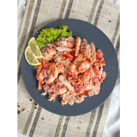 Салатное мясо представляет собой микс из всех частей краба: розы, колена, кулака, фаланги - это смесь разных фракций мяса краба, которые уже готовы к использованию. Спектр применения салатного мяса краба крайне широк: от изысканных блюд до простых домашних бутербродов (салат, омлет, пельмени, равиоли или брускетты).